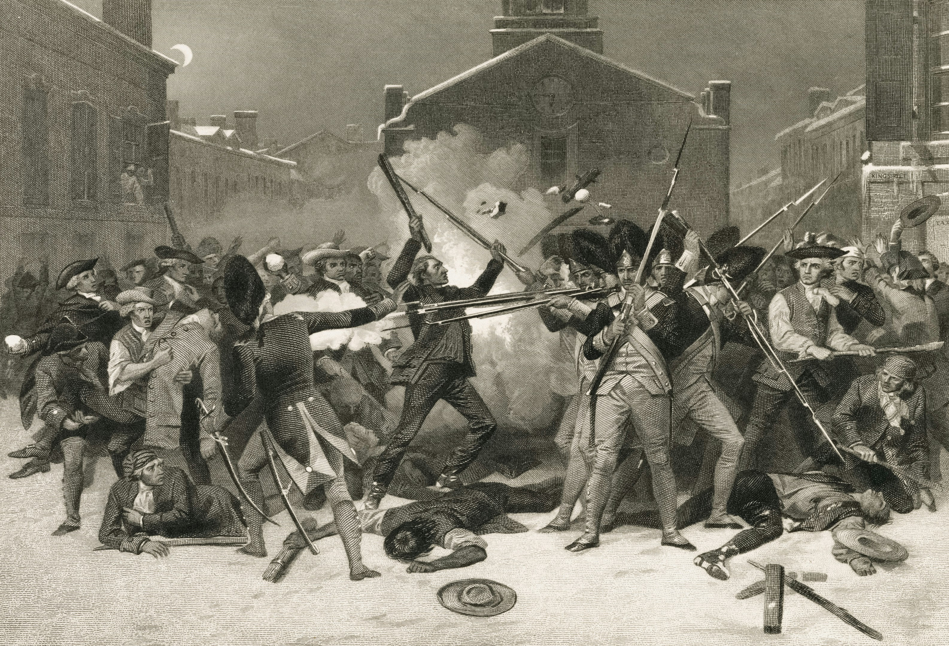 In March 1770, growing tensions between American colonists and the British administrators boiled over in the streets of Boston. One day, a group of rowdy colonists confronted a group of redcoats and a series of unfortunate events — a club struck a soldier and this led him to discharge his weapon, leading all the other soldiers to believe they were told to open fire — prompted the soldiers to shoot into the crowd.